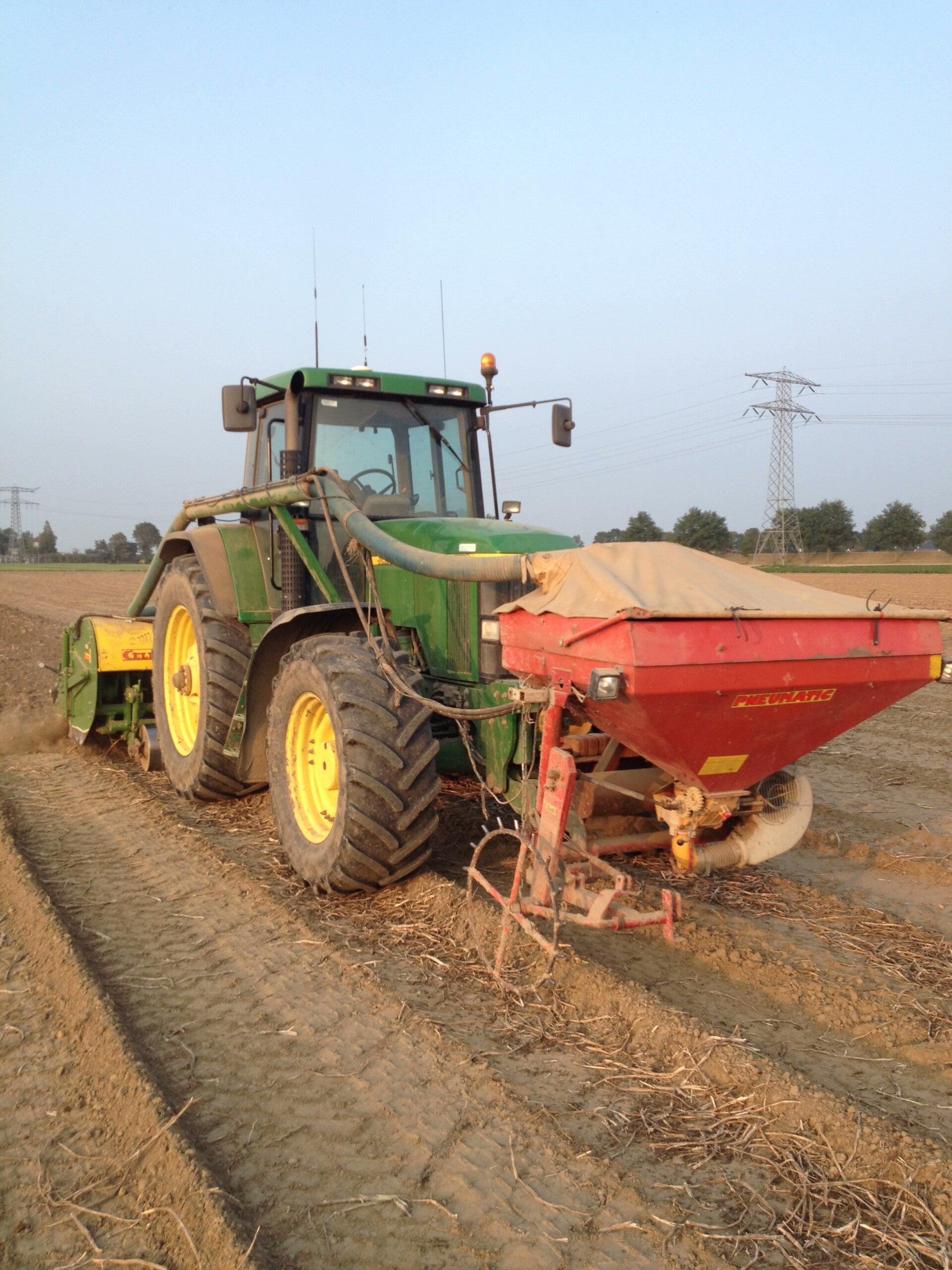 om de tarwe te zaaien beschikken we over een spit zaaicombinatie en voor de oogst hebben we een claas combine
